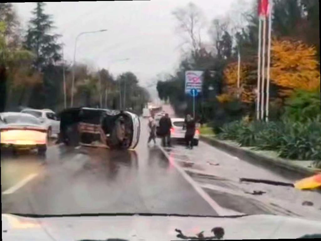 Автомобиль перевернулся на трассе «Сочи — Адлер» в Хосте