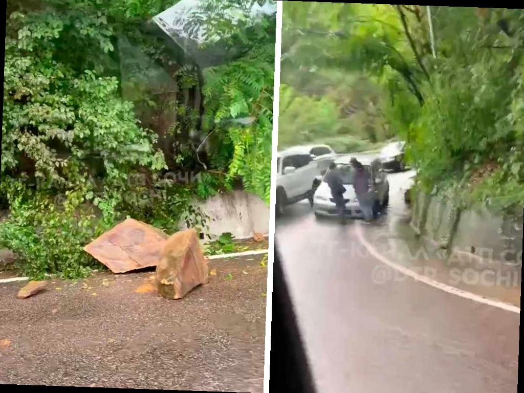 Автомобиль пострадал от камнепада на горной дороге в Сочи