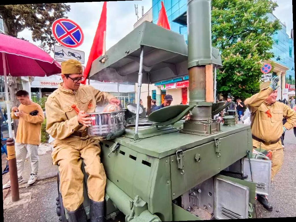 Специальные полевые кухни были организованы на улицах Сочи в честь Дня Победы. В рамках акции «Солдатская каша» все желающие могли попробовать гречневую кашу с тушенкой, приготовленную на мобильных пунктах питания.
