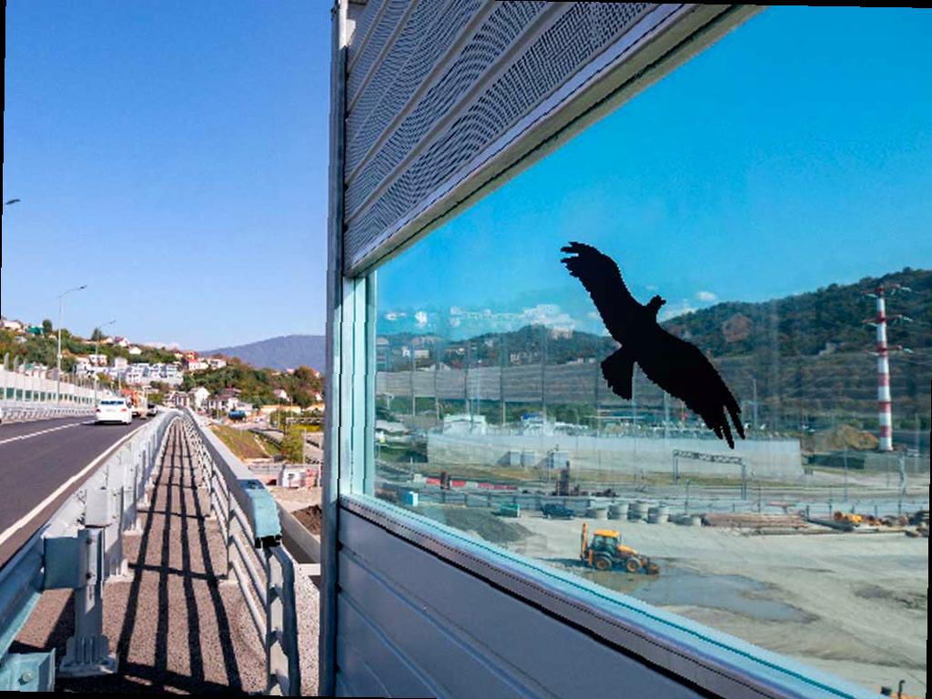 Специалисты ГК «Автодор» решили защитить мелких птиц от столкновения со стеклянными шумозащитными экранами вдоль Обхода Адлера. Для этого они нанесли на экраны силуэты хищных птиц, таких как ястребы и совы. Теперь птицы могут заметить опасность и избежать столкновения с препятствием.