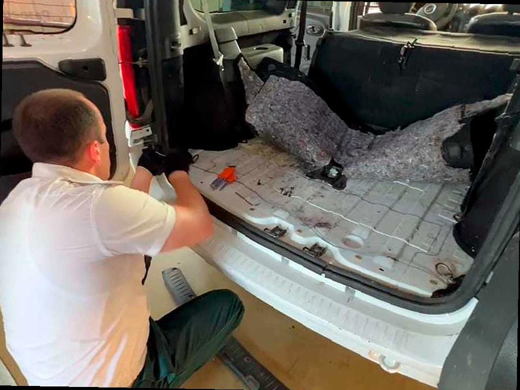 В Opel Zafira сигареты были скрыты в порогах и специально оборудованных люках под пластиковыми подкрылками. Всего было найдено 517 пачек.