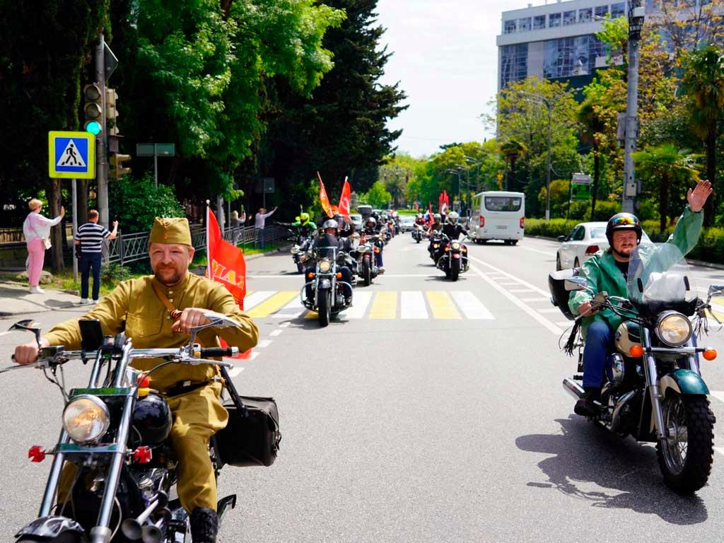 В честь Дня Победы в Сочи состоялся традиционный праздничный мотопробег, который прошел по улицам Центрального и Хостинского района. Начало колонны было установлено на железнодорожной станции «Мацеста», а участники мероприятия проехали по Курортному проспекту и улице Горького до главного мемориального комплекса курорта в Завокзальном микрорайоне.