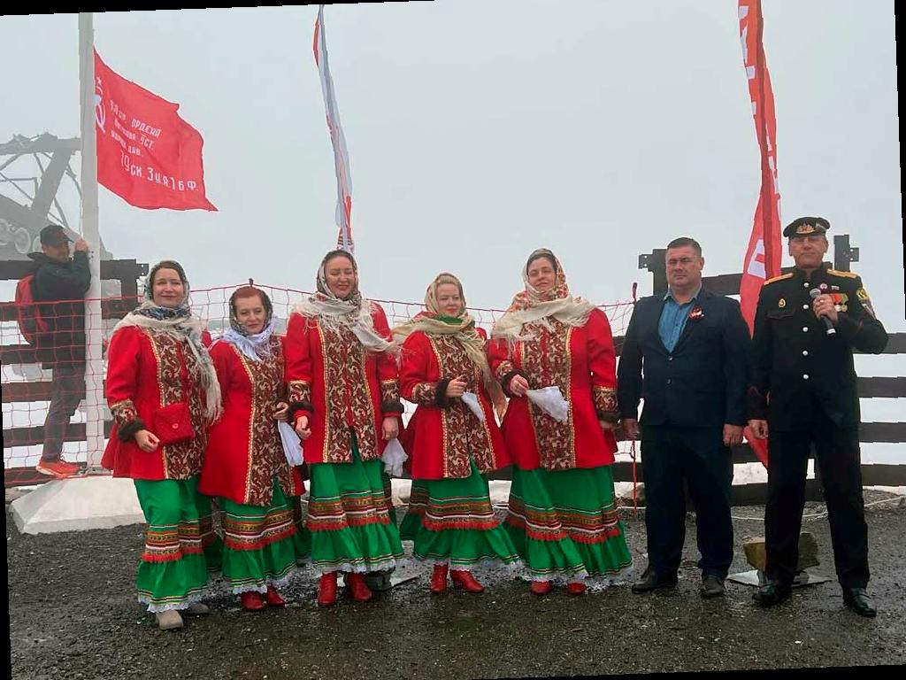 В горном кластере Сочи на Курорте Красная Поляна на высоте 2200 метров над уровнем моря установили копию Знамени Победы. На церемонии прозвучали песни военных лет в исполнении ансамбля «Родные просторы» и солиста, ветерана боевых действий, Владимира Сергеева.