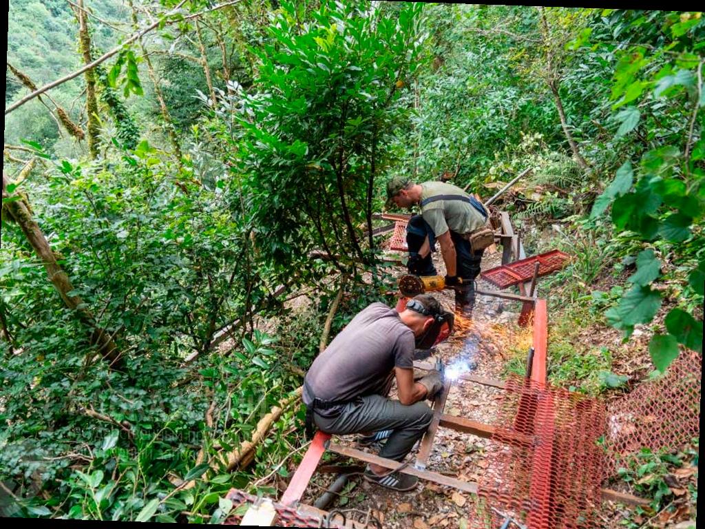 Демонтаж старых конструкций уже завершен, и строительство новых займет около двух недель. Специалистам придется переносить около 10 тонн грузов в условиях трудного рельефа буквально на руках.