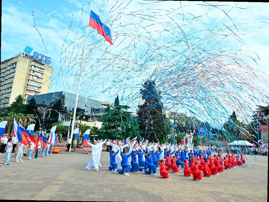 В честь праздника День России на курорте был поднят государственный флаг на площадях, в горах и над морем. В Центральном районе Сочи на площади Флага курсанты фрегата «Херсонес» и юнармейцы торжественно вынесли флаг к флагштоку, а участники специальной операции подняли флаг Российской Федерации.