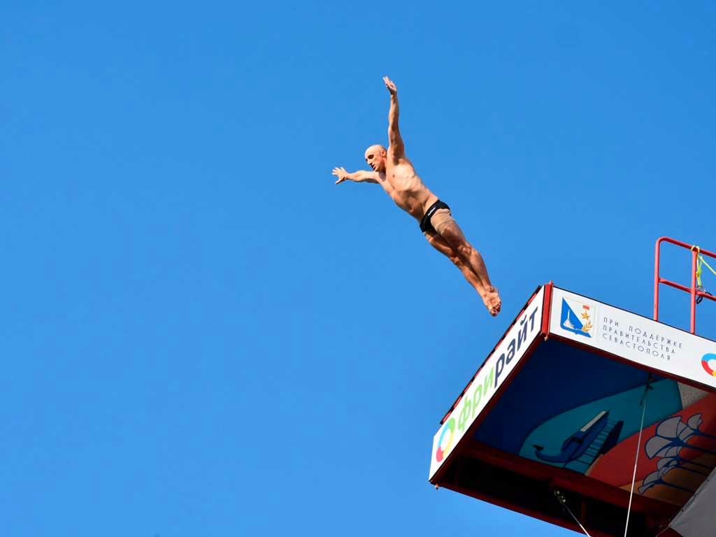 Хай-дайвинг — это очень зрелищный вид спорта. Участники прыгают с высоты 27 метров, развивая скорость до 95 км/ч и выполняя сложные трюки в полете.